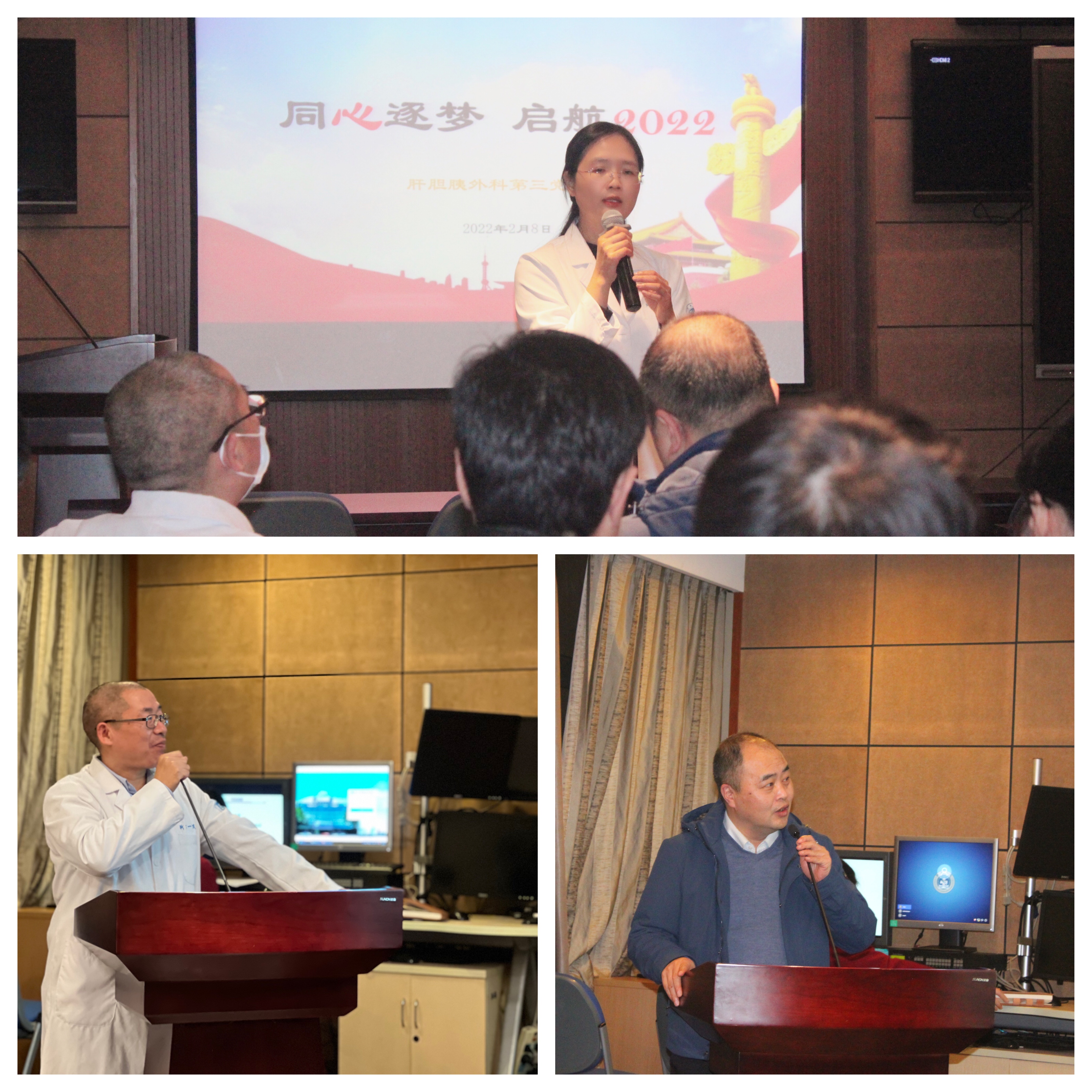 2022年2月8日,虎年的第二个工作日,肝胆胰外科第三党支部开展了“同心逐梦,启航2022”主题党日活动,会议由白雪莉主任主持。围绕样板支部的建设,大家依次总结了2021年的收获、不足,并分享了2022年的希望、计划和建议。白主任指出2022年党支部的建设要以习近平新时代中国特色社会主义思想为指导,深度融合党建和业务,紧抓意识形态,规范党员行为,团结凝聚群众,真正发挥先锋模范作用,做到样板支部“七个有力”的要求。