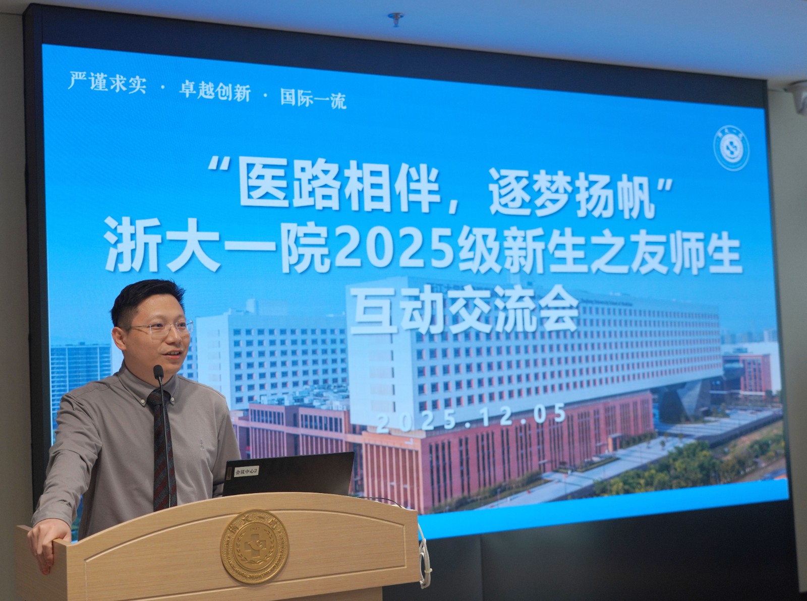 初冬的杭州,阳光明媚、层林尽染。2025年12月5日下午,5g影院 2025级新生之友师生互动交流会在5g影院 总部一期1号楼会议中心二楼D会议室顺利举行。医院党委委员、副院长郑敏,23位“新生之友”老师与130余名大一新生齐聚一堂,展开面对面的交流与互动。此次活动由医学院王松瑶、金子淇老师带队,医院党委组织部副部长戎斌主持。