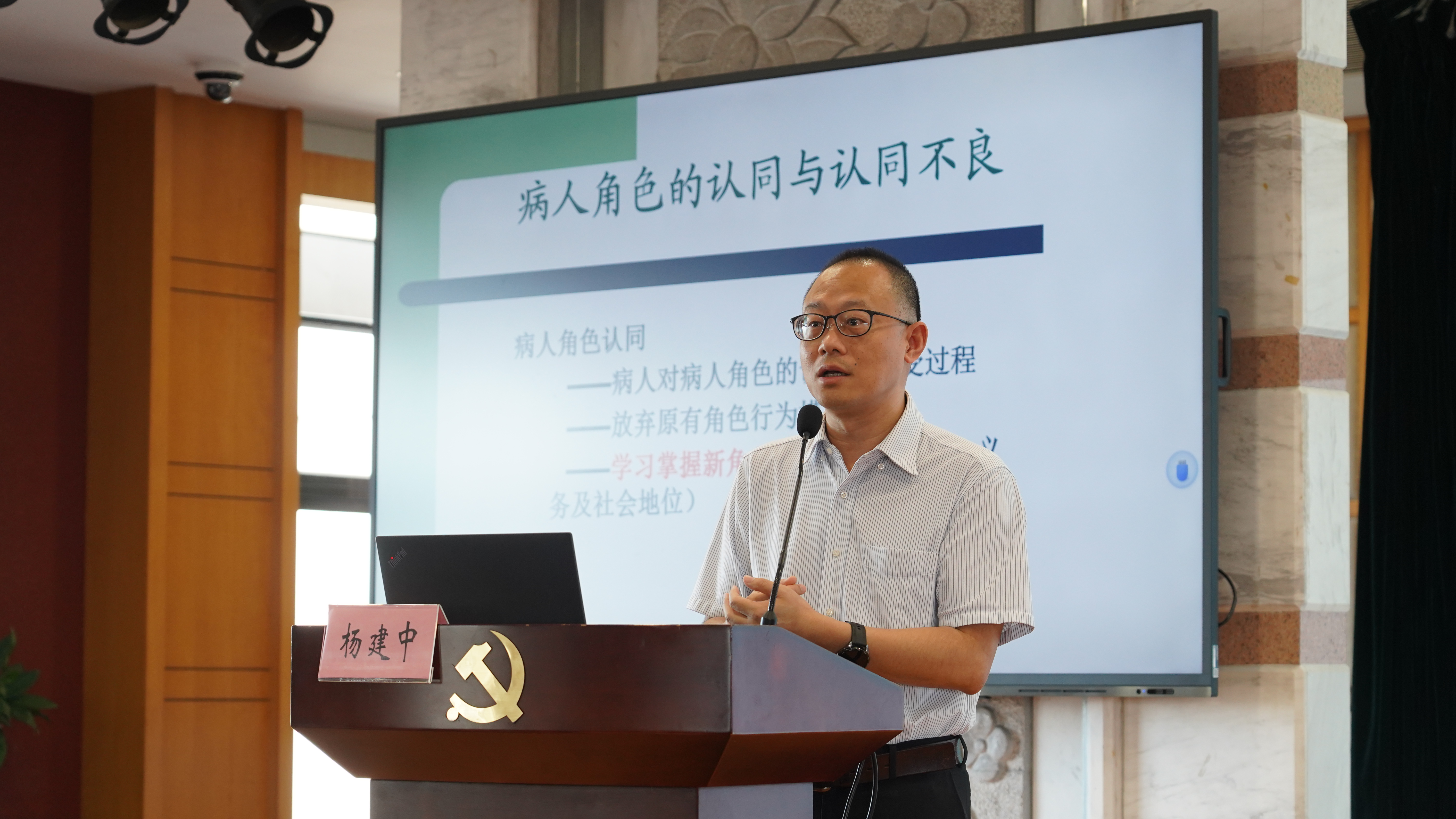 浙大一院精神卫生科主任医师杨建中为大家作《医患心理及医务人员心理健康促进》主题培训。杨主任用丰富的实践经验和深厚的理论功底,让大家学会如何与患者共情、如何在工作中保持积极的心态、如何将更饱满的热情和更专业的技能投入医疗工作中,为患者提供更加优质的医疗服务。