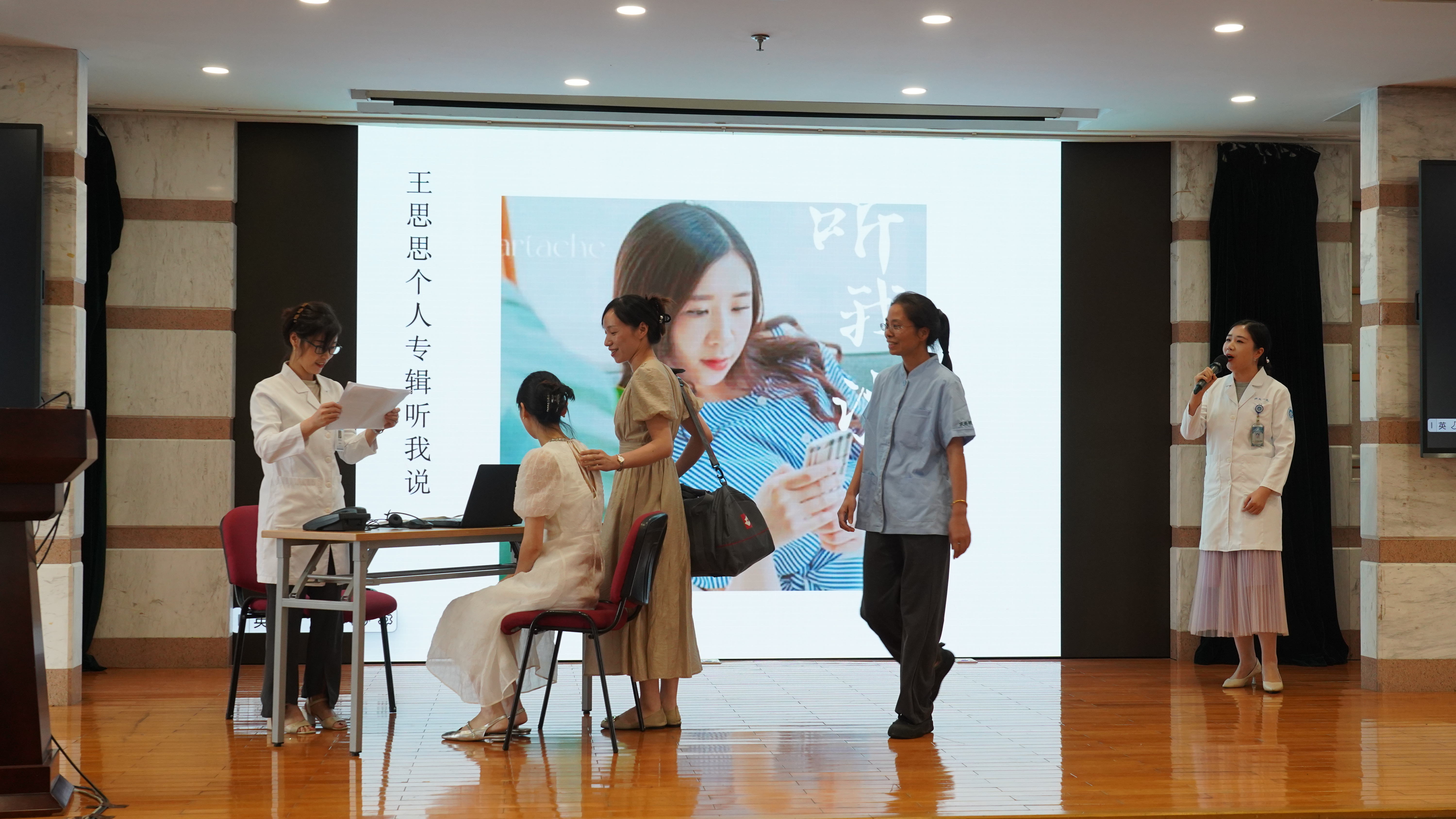 答题轮次间,各院区团队通过形式多样的节目向大家展现了入院服务中心的服务特色。庆春院区团队的小品《新闻联播》以幽默轻松的方式为大家呈现了窗口一幕幕温馨的画面,城站院区团队的快板《微笑医馆》诠释了入院服务中心微笑、主动、精准的服务理念,之江院区团队的情景剧《听我说》通过对患者住院过程的演绎展现出服务的细致、全面与专业,余杭院区团队用音乐表演《赞歌》点赞了医务工作者的一流服务。