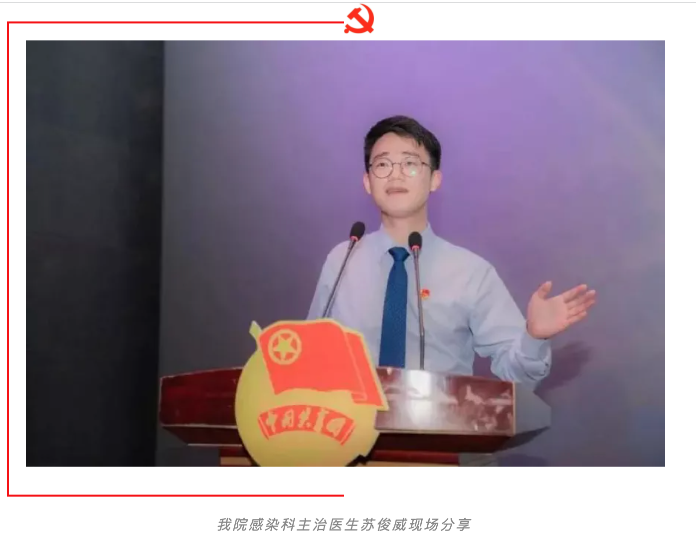 近日,我院新冠肺炎救治青年突击队队员苏俊威作为获得第24届“中国青年五四奖章”集体荣誉的成员代表参加了由共青团中央、全国青联主办,团省委承办的“永远跟党走 奋进新时代”——“中国青年五四奖章”获奖者(集体)事迹分享会。
