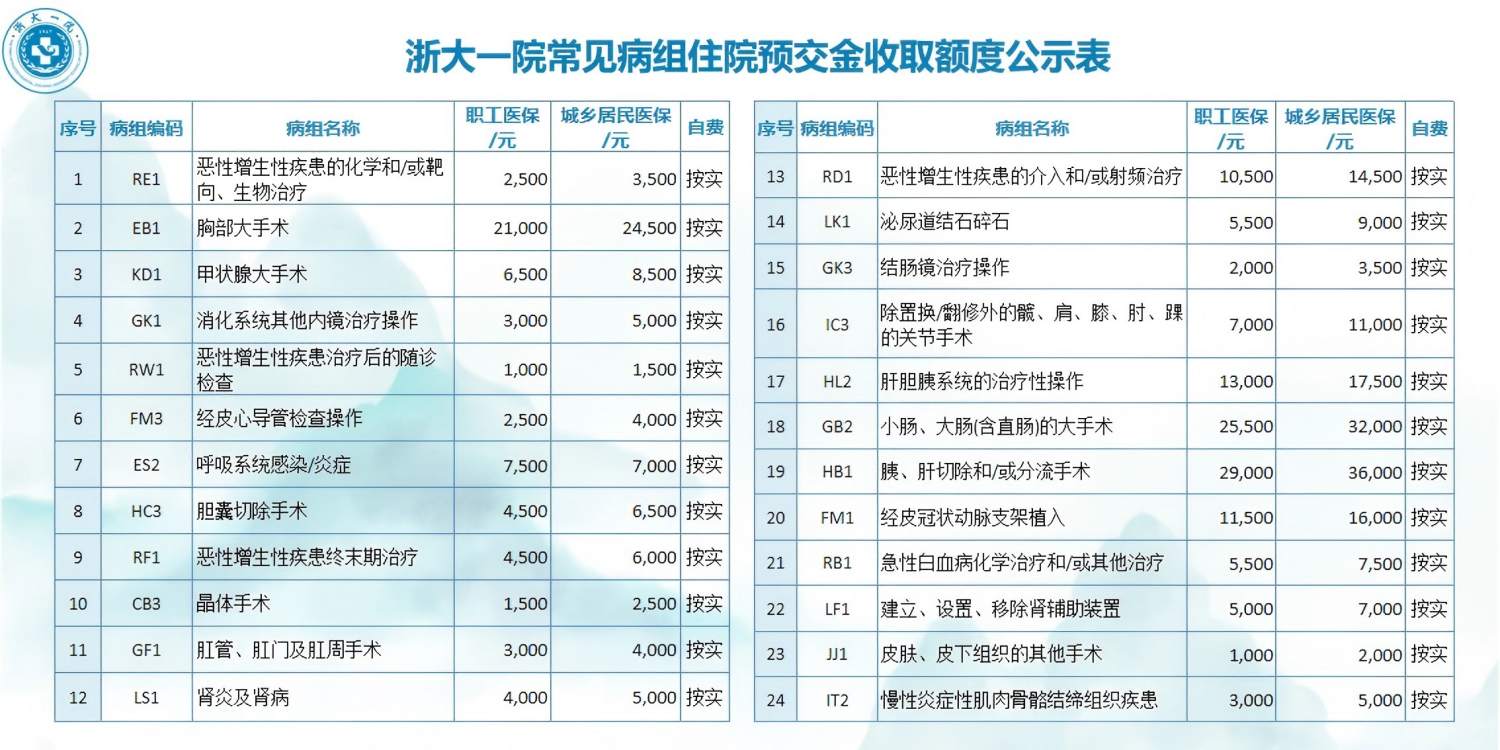 5g影院 常见病组住院预交金收取额度公示表