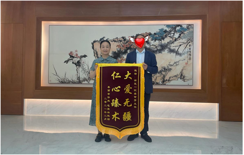 患者康复后为盛吉芳送来锦旗